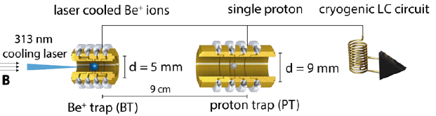 Nevertheless, there’s a lot of interest in experimenting on protons at low temperature—in particular, precisely testing how their mass, magnetic moment, and other properties compare with those of antiprotons. Toward that end, the Baryon Antibaryon Symmetry Experiment (BASE) collaboration has now demonstrated a method for using a cloud of laser-cooled beryllium ions to sympathetically cool a single proton, even when the proton and ions are too distant to directly interact.