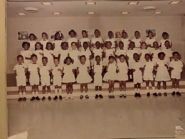 I am on the front row, the photo’s first student on the left. The eighth student on that row is a girl who I recall having a crush on: she has her right knee pointing towards her left leg. She would break the silence before our ceremony with an ear-piercing screech, repetitive, inconsolable grief beyond her years, perhaps mimicked from a funeral. We all knew what “died” meant. In some form or fashion, by five, you have lost beloved pets or relatives that you never thought would leave the Earth.